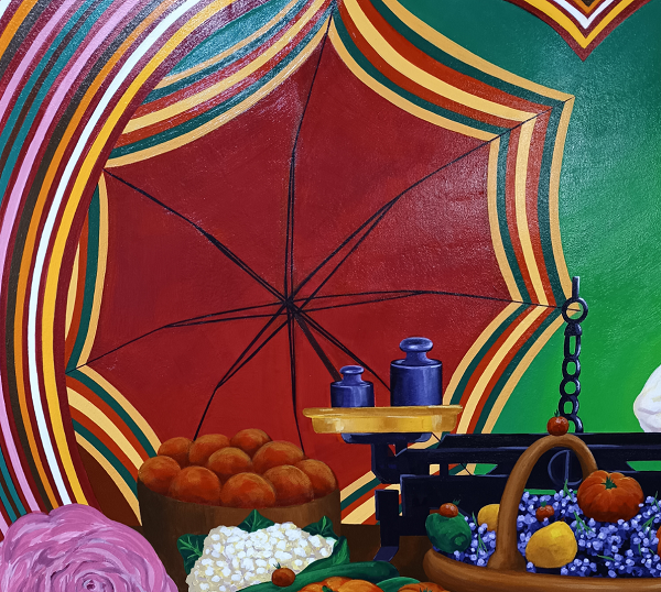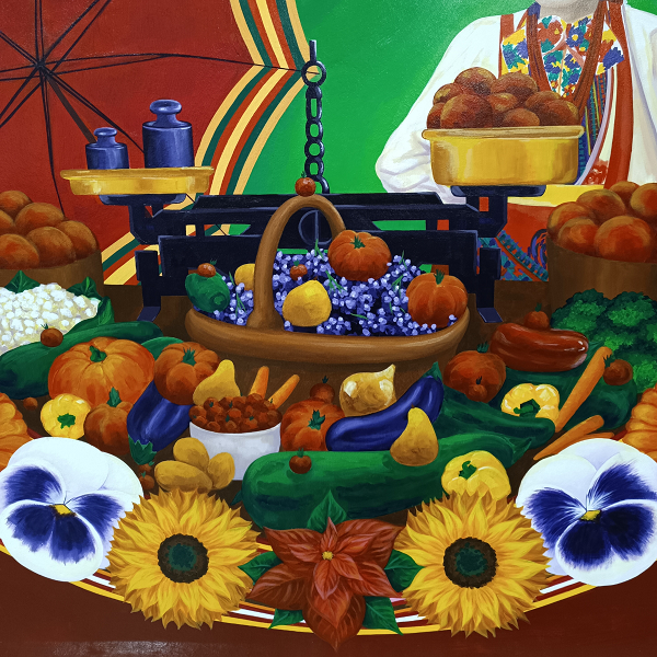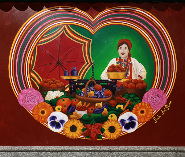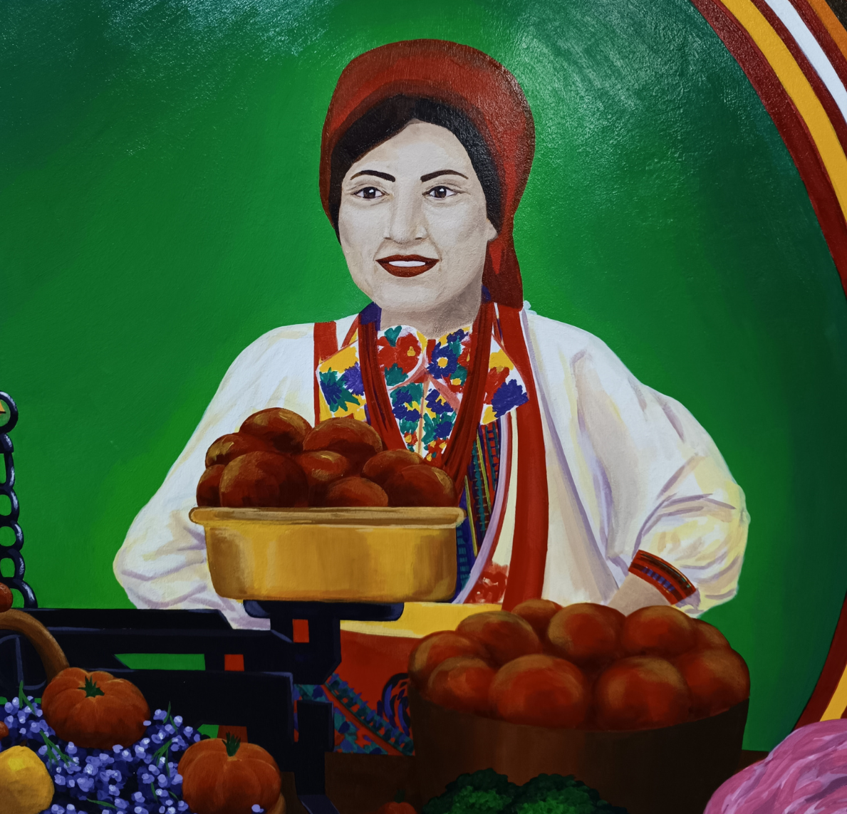 ![]() Ideja murala proizašla je iz fascinacije bojama i ornamentikom šestinske nošnje, prirodnog bogatstva voća i povrća, te narodnim pričama Gornjega grada. Inspiraciju je autorica pronašla i u djelima Giuseppea Arcimbolda, čije su je alegorijske kompozicije dodatno potaknule na razradu ideje i raskošan broj elemenata. ![]() Mural, naziva Bogatstvo iz rajskog vrta, izveden je u bojama šestinskog kišobrana i spaja motive tradicije i prirode. Počasno mjesto u sredini kompozicije zauzima svima dobro poznata kumica; simbol vrijednog rada i zajedništva tržnice, a na muralu je naslikana prema fotografiji autoričine bake, čime mural dobiva i osobnu dimenziju. - Djelo je nastajalo u više navrata tijekom ljetnih mjeseci, izvan radnog vremena tržnice, uz oko 150 sati rada. Voljela bih da mural prenese vedrinu i toplinu s kojom je i nastajao, te da potakne posjetitelje da zastanu, promotre detalje i osjete povezanost s prostorom i pričom koju on nosi - izjavila je autorica. ![]() Mural povezuje prirodno bogatstvo i poštovanje prema tradiciji kroz motive šestinskog kišobrana, licitarskog srca, starinske vage, bogatih pigmenata i detalja inspiriranih narodnim nošnjama, a naravno i kumice. To su vrijedne žene koje desetljećima omogućuju da u samom srcu grada imamo dostupno bogatstvo iz vrta. Hrana je ovdje prikazana ne samo kao osnovna životna potreba, već i kao izvor radosti i zajedništva, dok umjetnost postaje hrana za dušu. Posebno intiman sloj murala čini lik kumice naslikan prema fotografiji autoričine bake s vjenčanja, u dobi približnoj onoj koju autorica ima danas. Time je mural postao i osobna posveta generacijama žena koje su svojim radom hranile grad, te godinama održavale tradiciju. Cijela kompozicija oblikovana je u formi licitarskog srca, koju dodatno podržavaju linije i boje legendarnog kišobrana; neprekidno teku oko centra slike i zaokružuju cjelinu, dok cvijeće koje cvate u različitim godišnjim dobima simbolizira trajnu, cjelogodišnju ljepotu. ![]() Autorica se školovala u Školi primijenjene umjetnosti i dizajna, smjer slikarstvo, a potom je završila diplomski studij krajobrazne arhitekture. Ta kombinacija oblikovala je njezin pristup slikarstvu u javnom prostoru, dok su odrastanje u Supetru na otoku Braču te snažna povezanost s prirodom i biljnim svijetom trajna inspiracija njezina rada. ![]() |