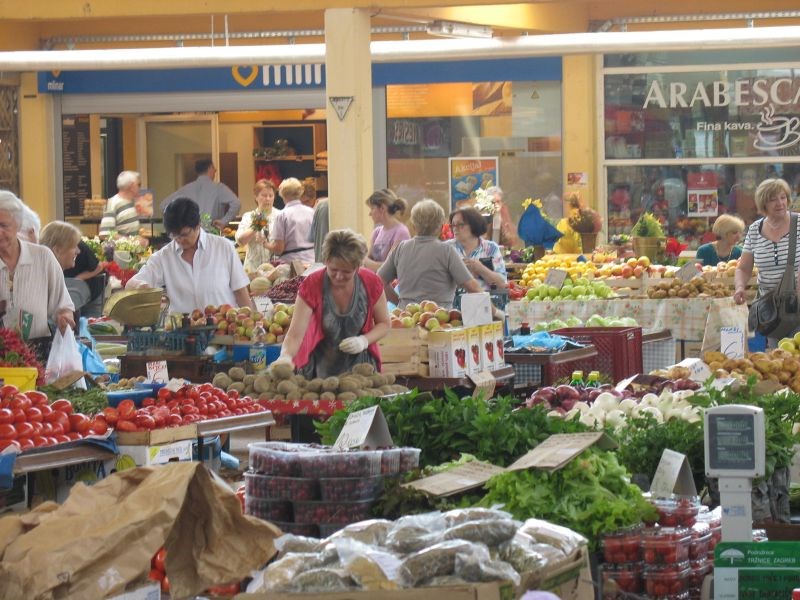 Zatvoreni dio (klupe, štandovi, vitrine i sl.) i vanjski dio za sezonsku prodaju, ribarnica